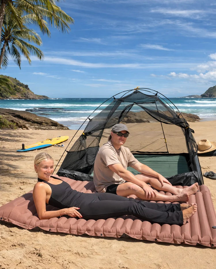 The Mattress Pro Double eliminates this completely. 145cm/57" of continuous, seamless sleeping surface. Sleep in the middle, cuddle, spread out - no gap, no seam, no problem. Our advanced valve system and reinforced construction mean you both wake up as comfortable as when you laid down. This is what couples camping should feel like.